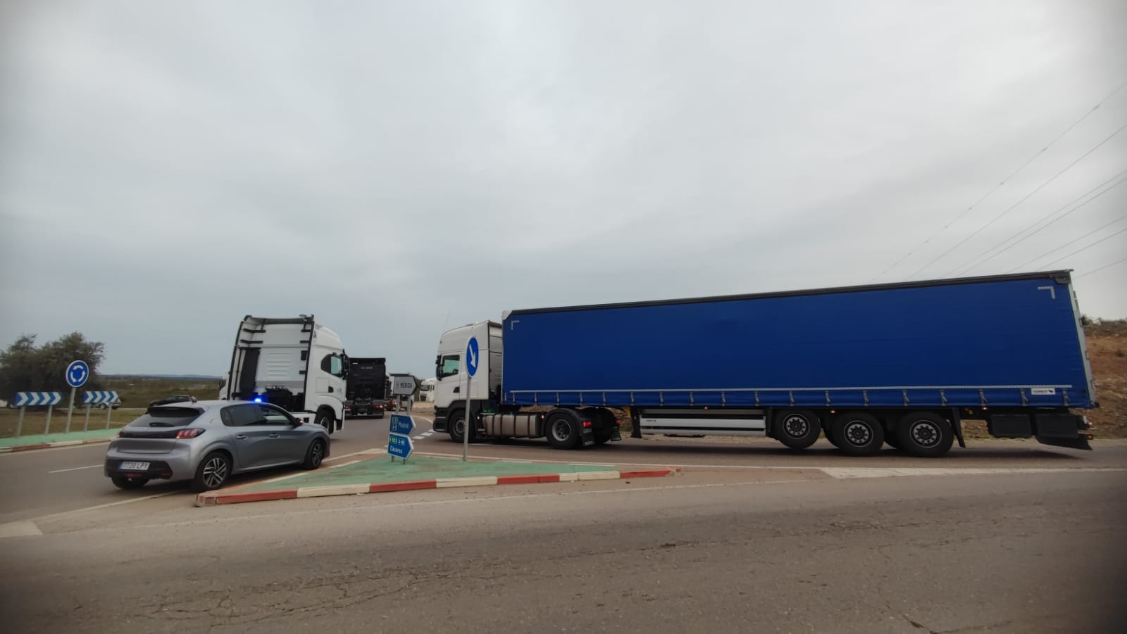 Cientos de cabezas tractoras de camiones y algunos tractores están bloqueando algunas de las principales vías de entrada al polígono El Prado y la autovía A-5 con el objetivo de colapsar el tráfico rodado en esta zona de Mérida. Se trata de una marcha motorizada del sector del transporte -no anunciada- que en estos momentos dificulta la incorporación al trabajo de los ciudadanos que circulan por estas vías.