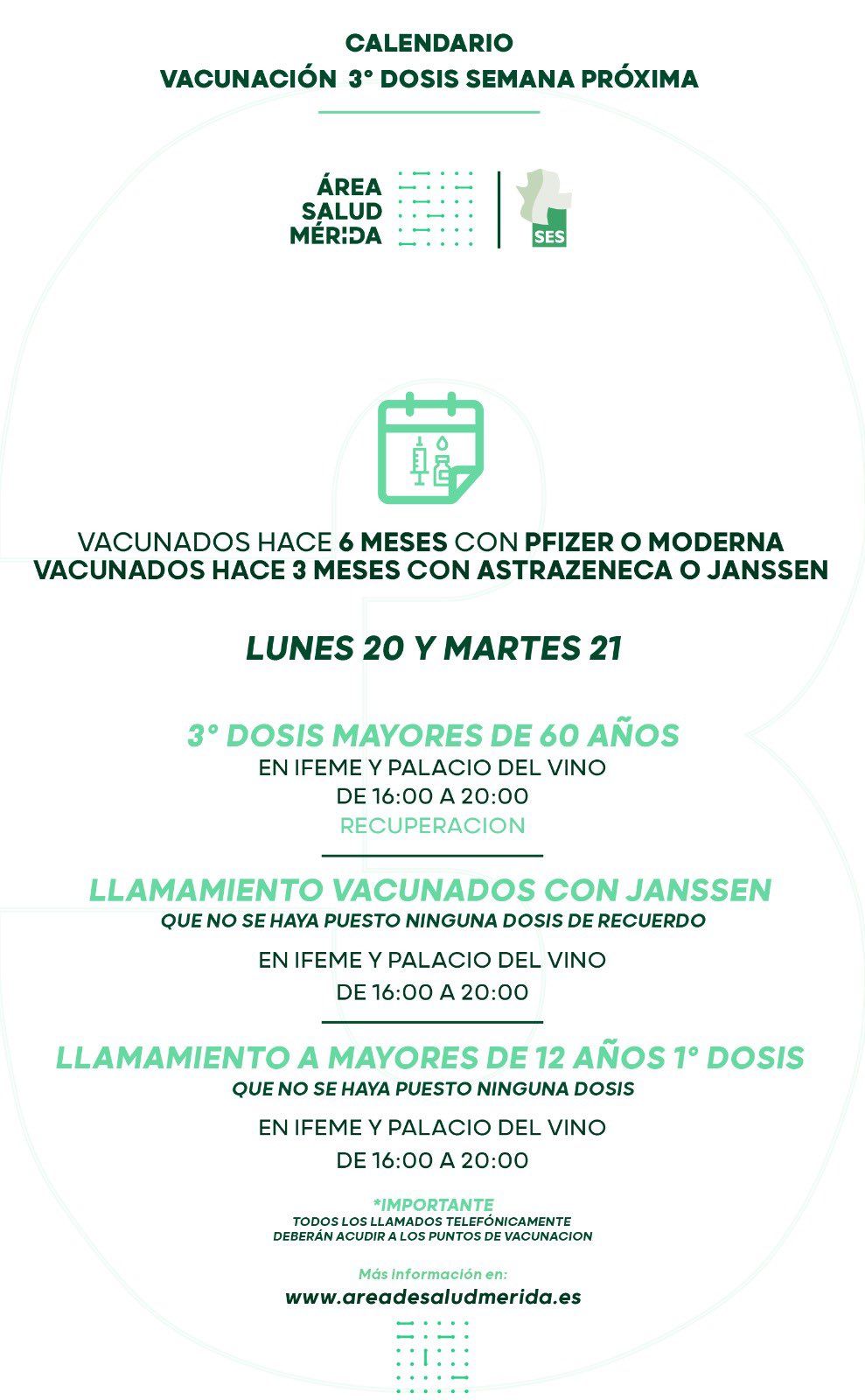 Llamamiento para vacunación de tercera dosis en Mérida y Almendralejo