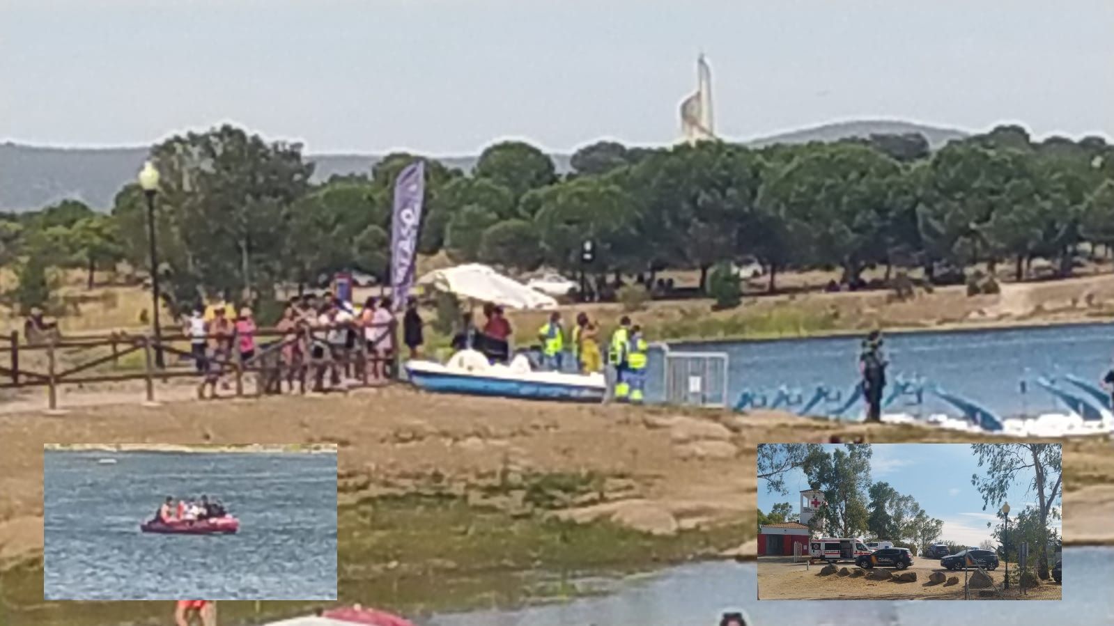 Televisión Extremeña Buzos de la Guardia Civil (GEAS), voluntarios de Cruz Roja, apoyados por efectivos de la Policía Local y Nacional, buscan a una persona en el...